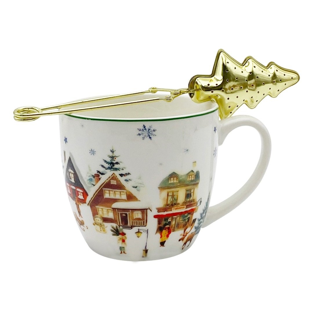 Hrnek se sítkem Vánoční vesnička 0,46l porcelán