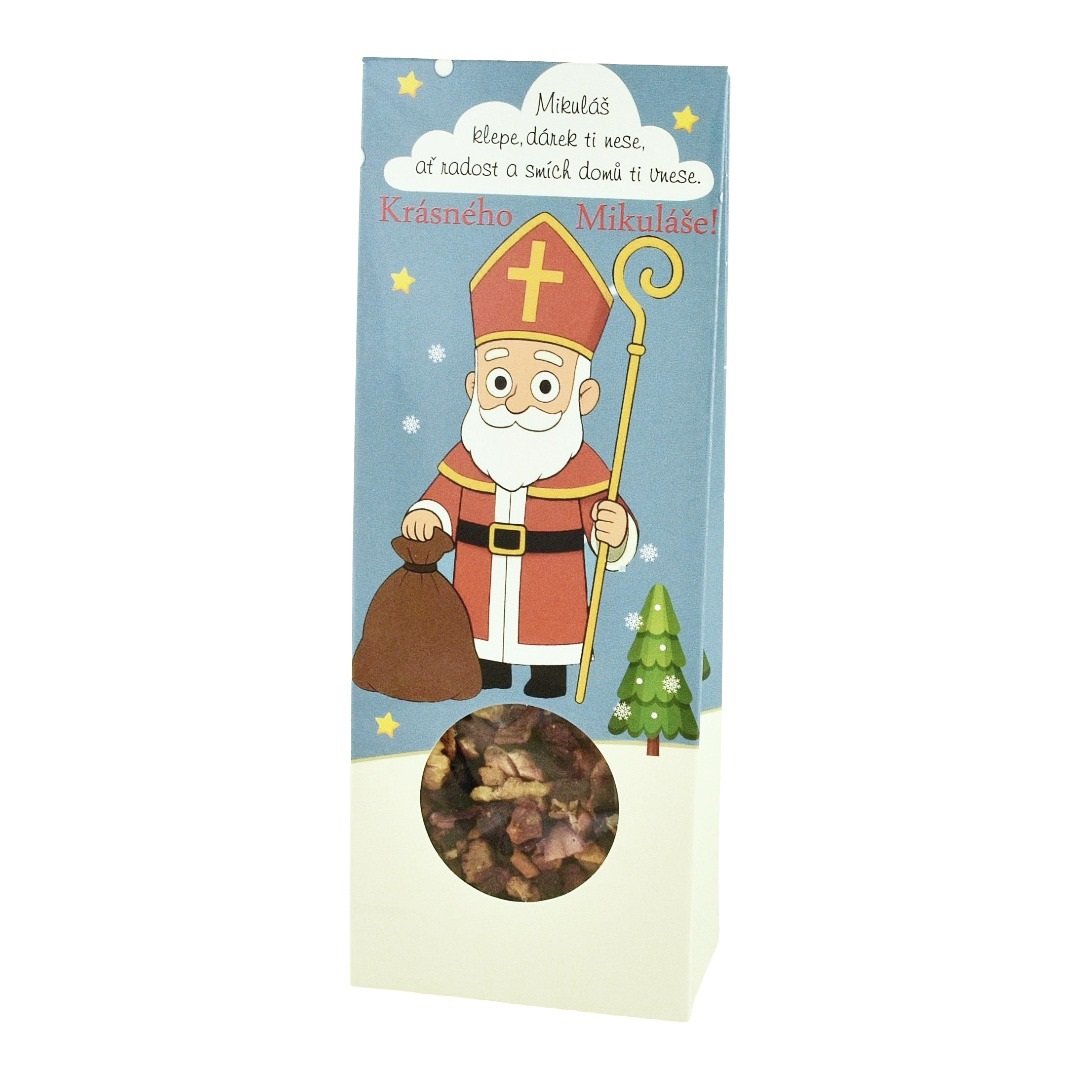 Veselá dárková krabička s oblíbeným motivem tradiční mikulášské trojice.