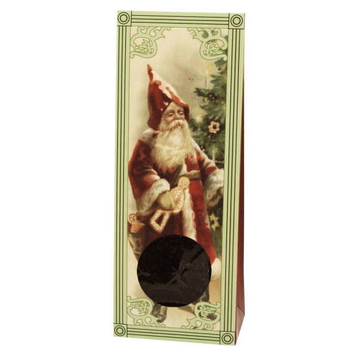 Lahodná mletá káva v dárkové krabičce Vánoční nostalgie s milým retro motivem Děda Mráze rozdávajícího vánoční dárky.