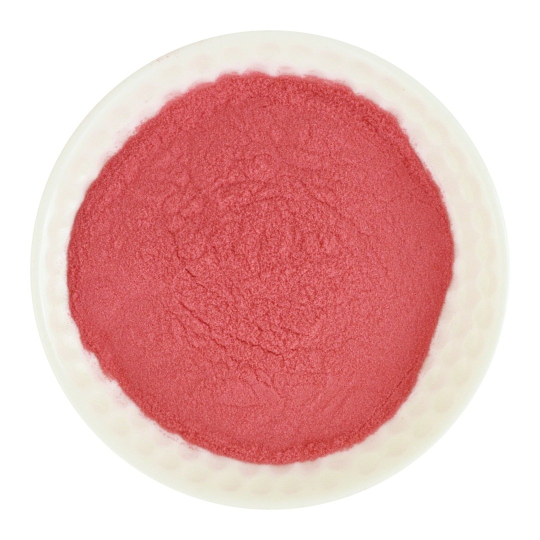 Jahodový prášok 🍓 vzniká spracovaním zrelých plodov jahody záhradnej (Fragaria ananassa). Pri výrobe lyofilizáciou (sušením mrazom) sa zachováva bunková štruktúra ovocia, čo zaručuje, že prášok chutí a vonia presne ako čerstvo odtrhnutá jahoda. Na výrobu 1 kg tohto koncentrovaného prášku sa spotrebuje približne 8 až 10 kg čerstvých jahôd. Výsledkom je jemný prášok sýtej ružovej farby s intenzívnou sladkou vôňou a vysokým obsahom antioxidantov (polyfenolov) a kyseliny listovej.